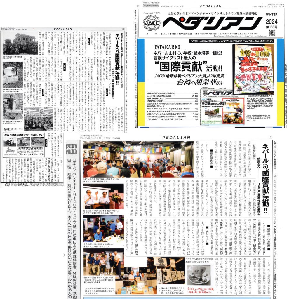 JACC日本国際自転車交流協会(注:地球を駆けるサイクリングとアドベンチャー分野で世界をリードする団体)の2024年新春号第166号に表紙を含め3ページにわたって、私達の活動を紹介する特集記事が掲載されました。