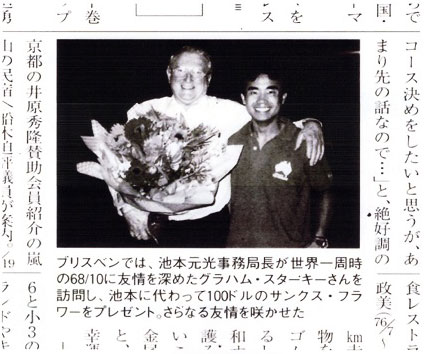 紹介頂いたブリスベンのグラハム・スターキーさんをまだ訪問していませんが、訪問には100ドルの花束を持っていき、スターキーさんに失礼がないように、池本事務局長に迷惑がかからないよう、しっかり挨拶したいと思います。