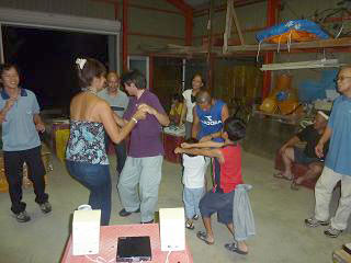 南米ペルー仕込みの山崎婦人マガリさんによるダンスの指導。ダンスの苦手な人も全員参加して大いに盛り上がる。音楽は南米のサルサとメレンゲ。