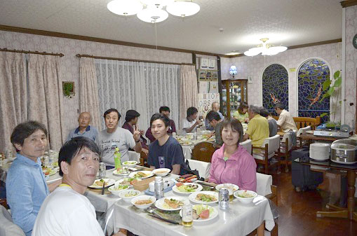 夕食の途中から神谷泰毅会員によるオーストラリア一周体験報告会が始まりました。世界一平和を実感できるオーストラリアでしたが、水の入手で苦労することがあり、大自然の過酷さを実体験されました。神谷会員の次に日名会員、大友会員、木下評議員、と順番に夜遅くまで熱い地球体験を語ってもらいました。