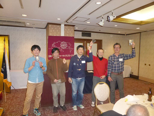8.お年玉くじ引き-西畑勝明会員が勤務する「OGKカブト」よりいただきました、自転車旅商品がくじ引き当選者にプレゼントされました。