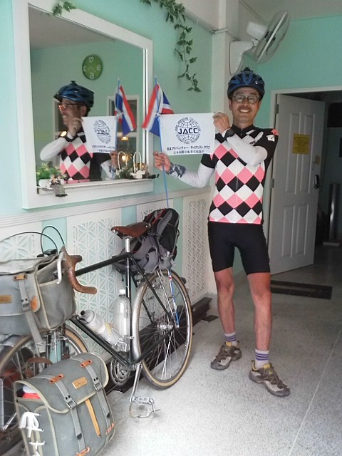 日名 保彦 2011年12月、台湾日本一周走破2015年2月1日~3月8日 東南アジア (タイ、ミャンマー、カンボジア、ベトナム、)日本の川の源流を訪ねるサイクリング実行中 平成27年2月1日 バンコク山田雅広バンコク支部長を訪問
