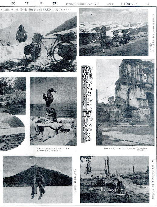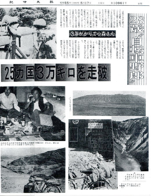 ※コロンビア・カリ郊外の橋の下で野宿中に強盗に襲われ持ち物すべてを失うが新たな自転車で走り世界一周を達成する。