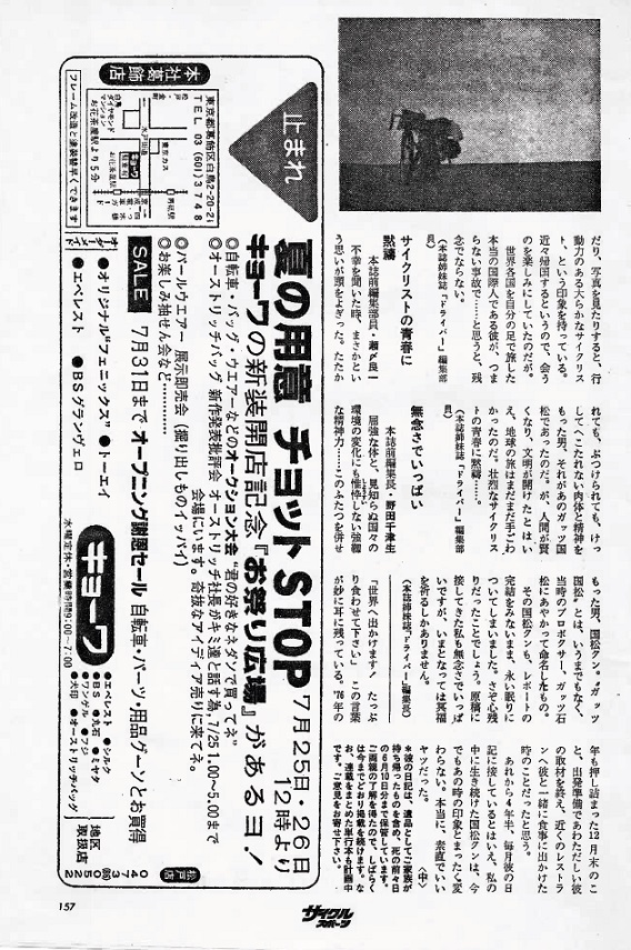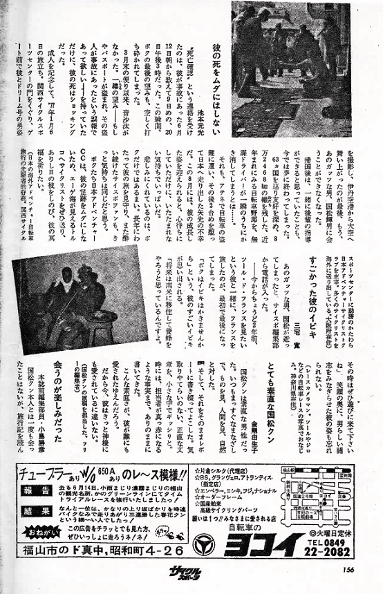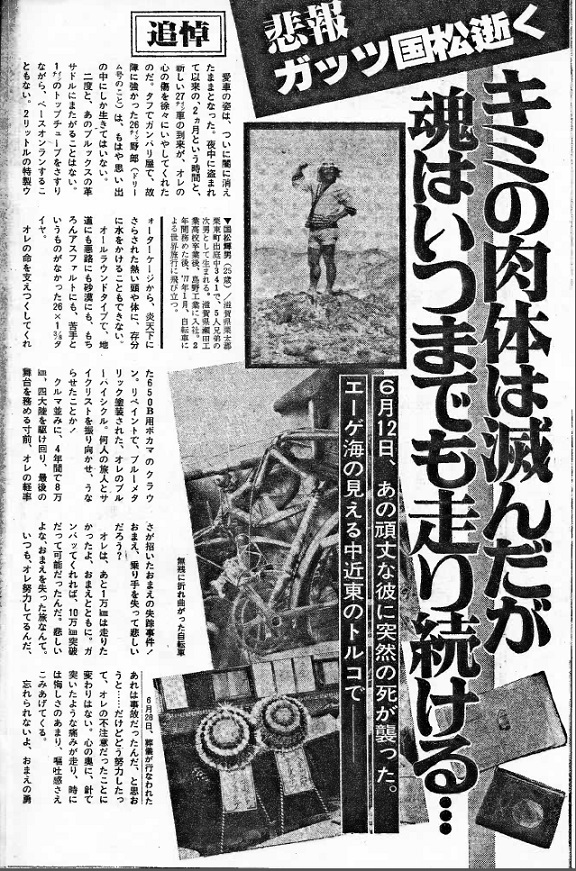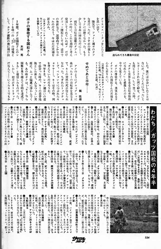 月刊誌サイクルスポーツに「ガッツ国松の世界の国見てある記」と題して53回連載