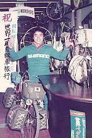 1977年1月世界一周に旅立った国松輝男。中学校時代に琵琶湖を一周して以来、「いつの日にか世界を走るんだ」という夢を育み、地元工業高校を卒業後、世界最大の自転車部品メーカー・島野工業(現シマノ)に入社。自転車のメンテナンスを覚えると共に、資金作りに励んだ。