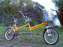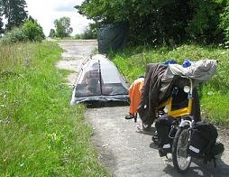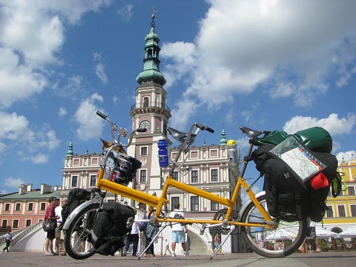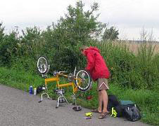 タンデム自転車はインターネットのオークションで中古品を300ズウォティ(約7640円)で買いました。小さく折りたたみが可能な1970年代のポーランド製(Romet)のものですが、鉄のフレームは品質が悪く、溶接修理が必要でした。後ろの三角の部分も補強溶接し、前後のキャリアを取り付けたりすると合計1200ズウォティ(約30000円)かかりました。車輪は20インチ。ブレーキは前輪なしで後輪はペダルブレーキです。ギアチェンジはありませんから上り坂では押して歩きました。それでも平地が多い地域だったので一日平均88km、最長で一日135km走りました。