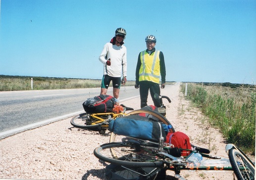 当初、MTBで行こうかと悩むが、出口事務局長の薦めで旅自転車の元祖ランドナーで行くことになった。アウトバックではパンクに悩まされたが、それでも重い荷物を積んで頑張ってくれた。