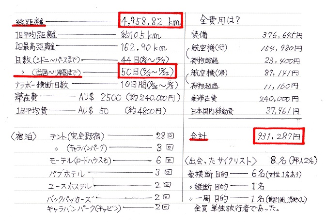 南米、アフリカに比べると豪横断など冒険的レベルは低いかもしれない。けれど僕にとっては、大きな夢であった。それが叶った今、とても満足している。道中、毎日いろんな人に出会い、世話になった。一日一日が大事だったと改めて思った。すべてに感謝だ。